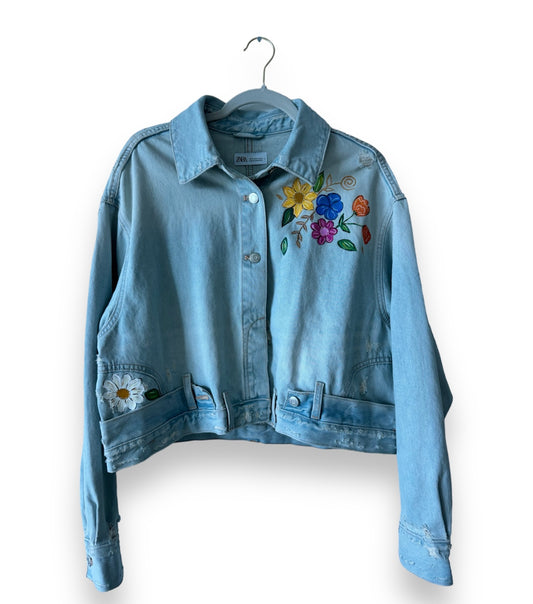 Flowers in Love VIII (Size M) Floral Denim Jacket