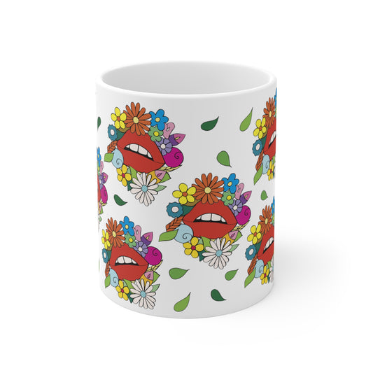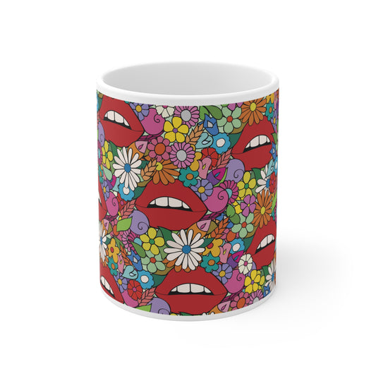 Lips in Flowerland - Floral Ceramic Mug 11oz